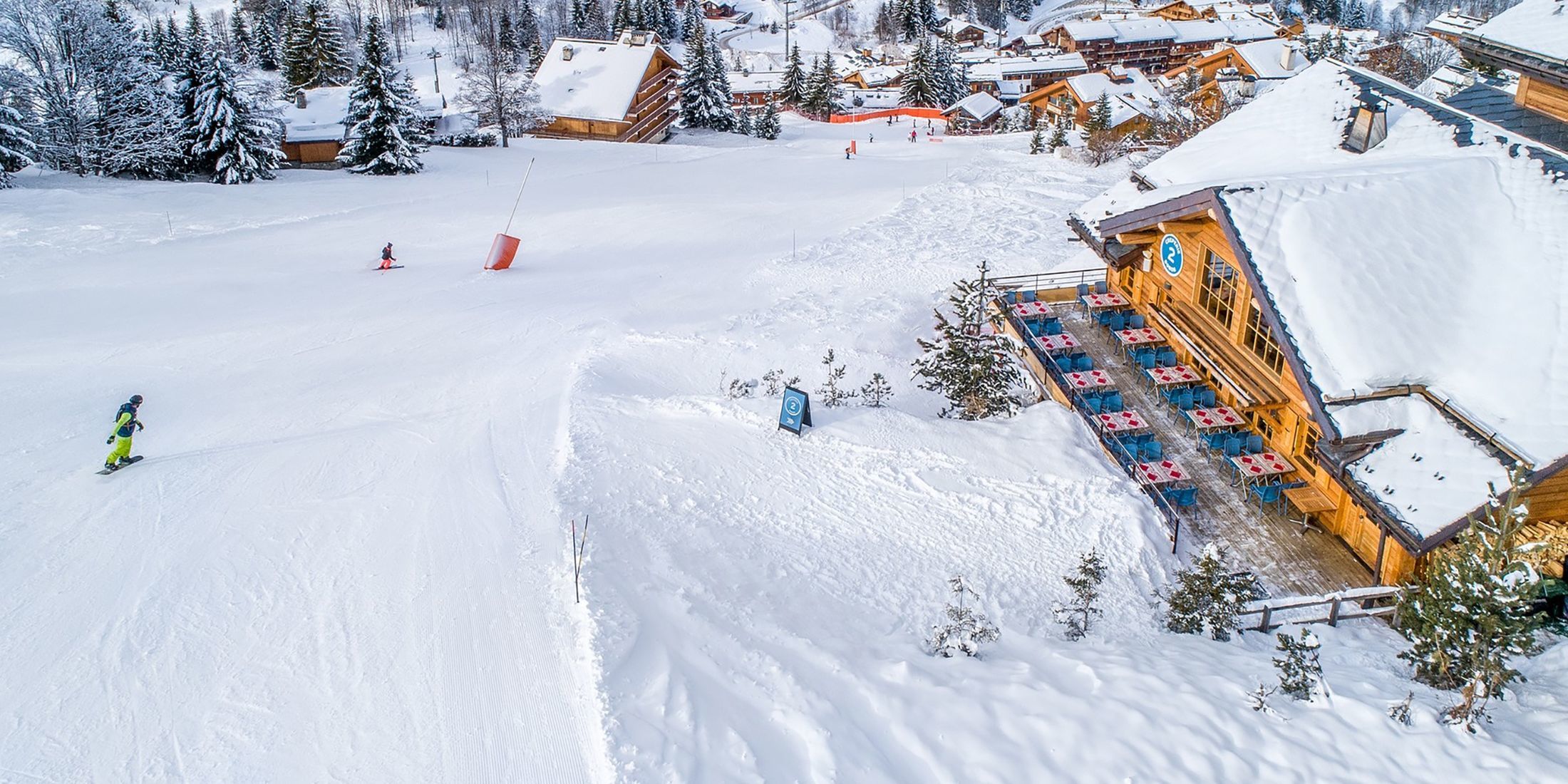 At lunchtime, arrive on skis and enjoy the sunny terrace for a gourmet break in our creperie at the foot of the Doron slope (Meribel).